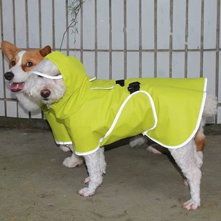 더디테일 대형견 우비 반려동물 의류 경량 레인 재킷 방수 방설 방풍 강아지용 아웃도어 반사 스트라이프 목줄 구멍 조절 가능한 배꼽 스트랩이 있는 안전한 강아지 레인코트, 1개, 8XL, 형광노란색